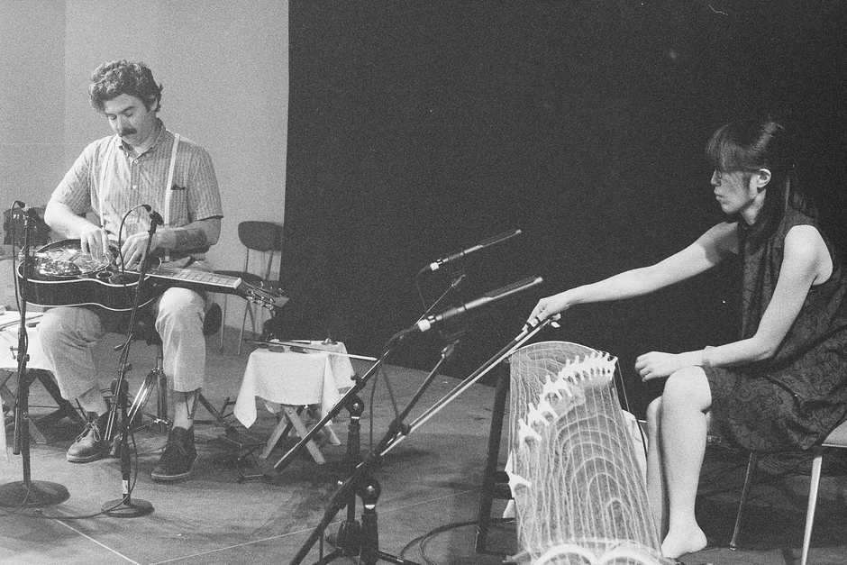 Caspar Sonnet (lap-steel dobro) Kozue Matsumoto (koto) is an acoustic experimental, improvisational duo based in Los Angeles, California. Both artists employ numerous extended techniques exploring an array of sounds and textures heralding modern and early eastern and western folk traditions. The collaborations are fiercely intensive, concentrated duets where both players utilize prepared techniques composed in set time blocks. Each player is then assigned a specific set of tools to manipulate various parts of the instrument and are assigned set tunings, microtonal or otherwise. Their use of instrumental augmentation, movement and presence are captivating to witness.