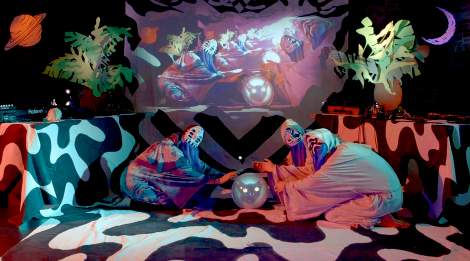 In their web TV series, “Sistership TV,” multimedia performance art trio and research group The Powers envision a world inhabited by animal kin and monstrous creatures, haunted by other-dimensional entities, and erupting with the repressed archetypes of classical myth. Through the media of video, music, story-telling, dance, and ritualistic performance, The Powers present a performance that is both absurd, irreverent, and terrifying, drawing inspiration from mythological trinities of sisters and reconfigurations of hetero-patriarchal myths.
