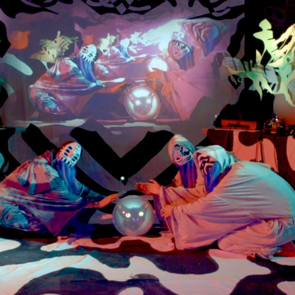 This episode features a conversation with Madison Heying and the multi-media band, The Powers ( Emily Pelstring, Katherine Kline, and Jessica Mensch). They talked about The Powers’ working method, which centers around the creation of a feminist cosmology, inspired by such disparate sources as Greek Mythology, campy 1980s horror films, and the scholarly work of Donna Haraway. Throughout the episode you’ll hear excepts from The Powers’ performance of Sistership TV in Santa Cruz on November 16, 2019. Additionally, you’ll hear “Bunny,” an unfinished unreleased track from their upcoming album, in the middle of the episode.